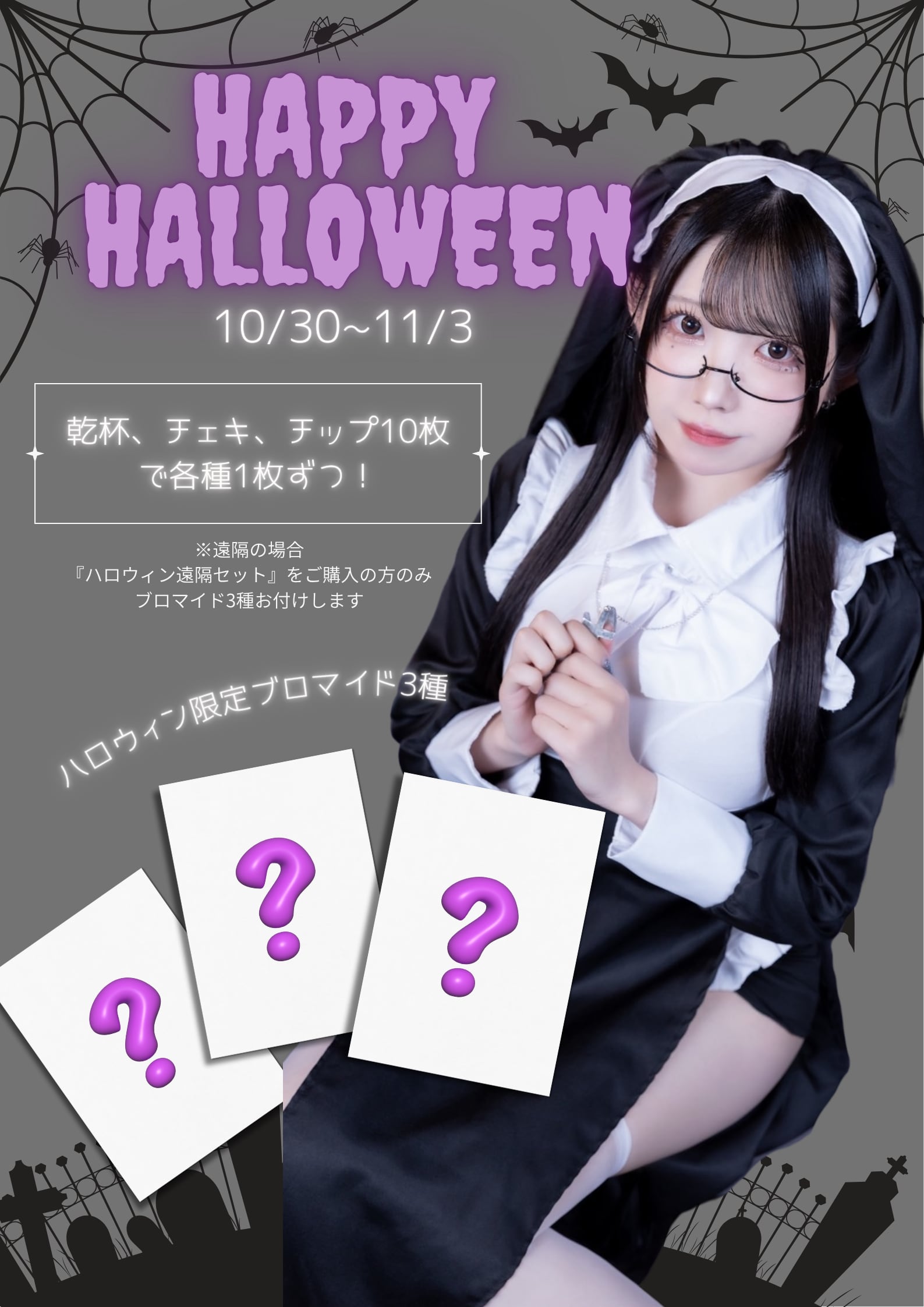 乾杯、チェキ、チップ10枚がセットになったメニューです。 ハロウィン限定ブロマイド3種をお付けいたします。 発送は各キャストが担当しておりますので推しキャストまでDMにてご連絡下さい。
